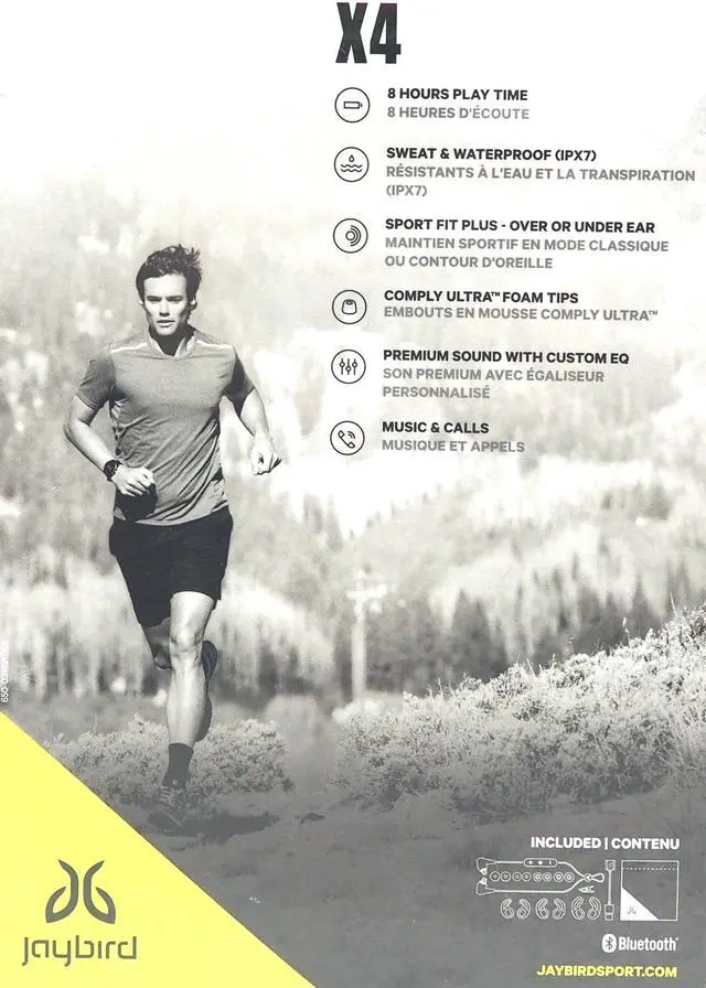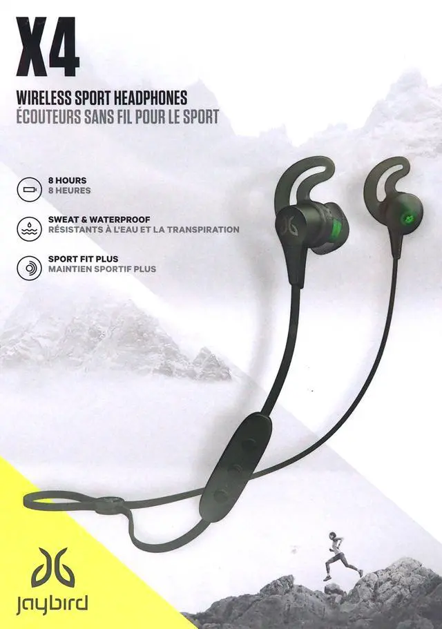 Plug in these rugged Jaybird X4 wireless sport headphones and hit the trail running. An eight-hour playing time handles your entire workout, while the water-resistant, sweatproof design keeps up with your every activity. Comply Ultra foam tips combine a secure fit with reliable comfort. The multifunction versatility of these Jaybird X4 wireless sport headphones let you listen to music or take and make calls while you exercise