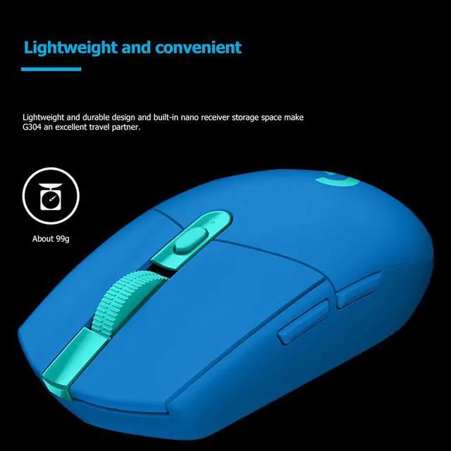 At Logitech G, a wireless gaming mouse doesn't need to be heavy. G304 is very light, coming in at only 99 grams, made possible thanks to the lightweight mechanical design and ultra-efficient battery usage.