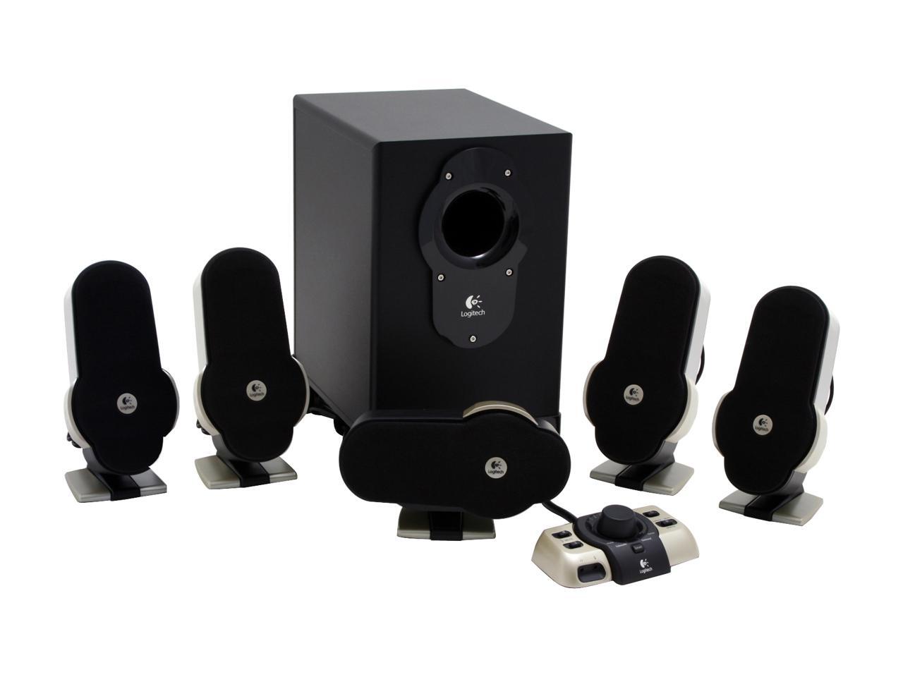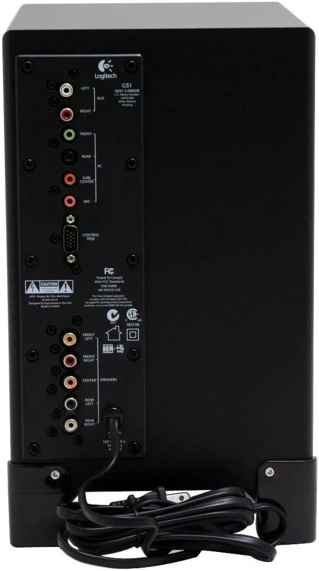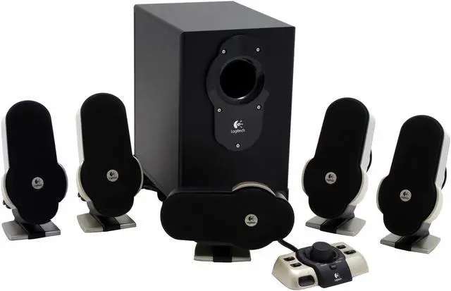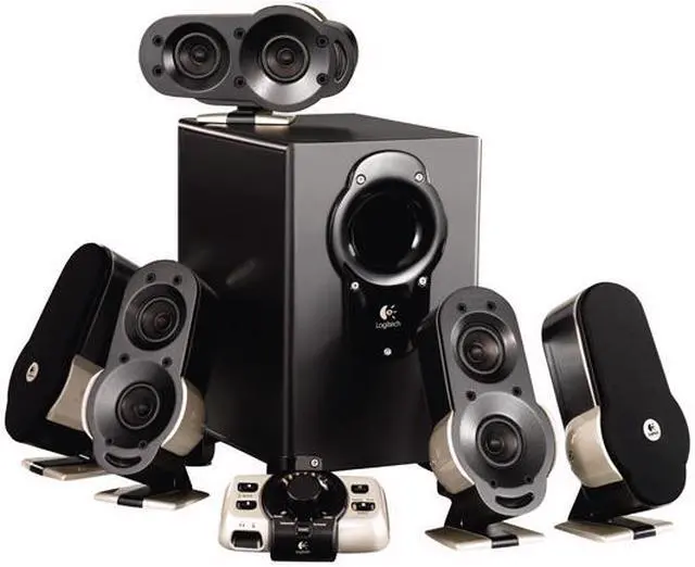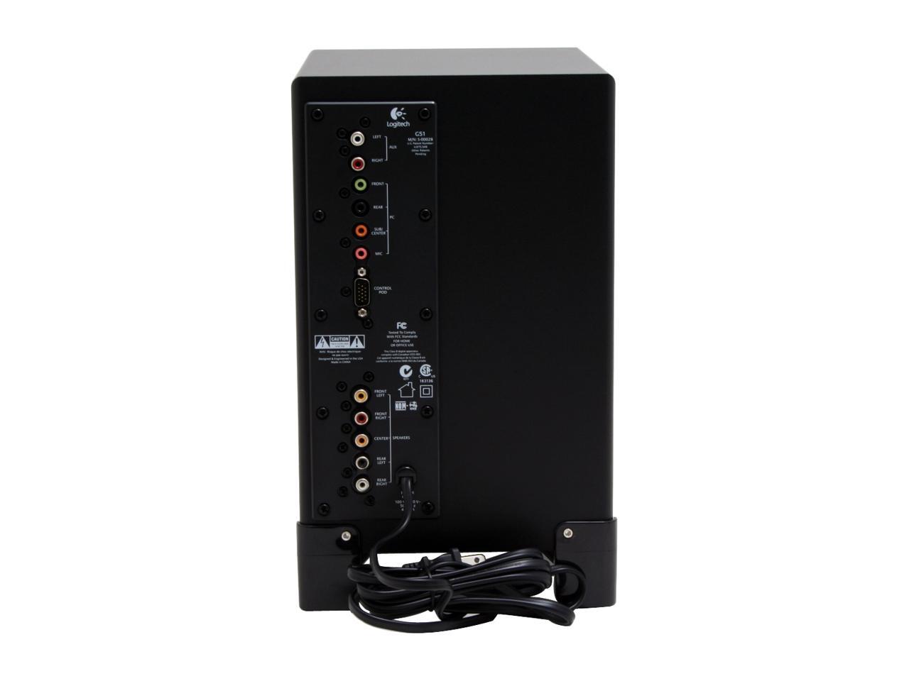 | Features | Weighted, non-skid control pod: With the control pod's silicone feet, you don't have to worry about it shifting during intense gameplay Headphone and microphone jacks are included right on the control pod for easy access and convenience Independent volume controls and convenient LEDs make controlling the subwoofer, center channel and satellite speakers simple Precision Mute Controls: Easily mute the game audio, or mute only the microphone – or both Matrix Surround: Create 5.1 surround sound from common 2-channel stereo sources like music and legacy games. The G51 offers two matrix modes: Gaming Matrix mode boosts the rear speakers and subwoofer to provide a more intense gaming experience. And with the ported, down-firing subwoofer, explosions sound more explosive Music Matrix mode enhances stereo music, delivering a more natural surround-sound experience through all five satellite speakers High Performance Audio: With 155 watts of total RMS (root mean square) power, the G51 speaker system is optimized to deliver high-performance audio experiences. The ported, down-firing subwoofer rumbles with every explosion. Frequency Directed Dual Driver (FDD2): The laser-tuned satellites feature Frequency Directed Dual Driver technology sound technology creates a uniform soundfield anywhere in the room. FDD2 eliminates the hot spots and uneven response of conventional dual-driver design. |