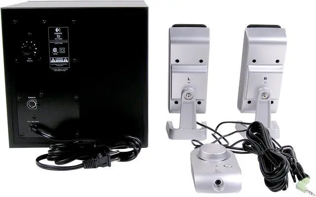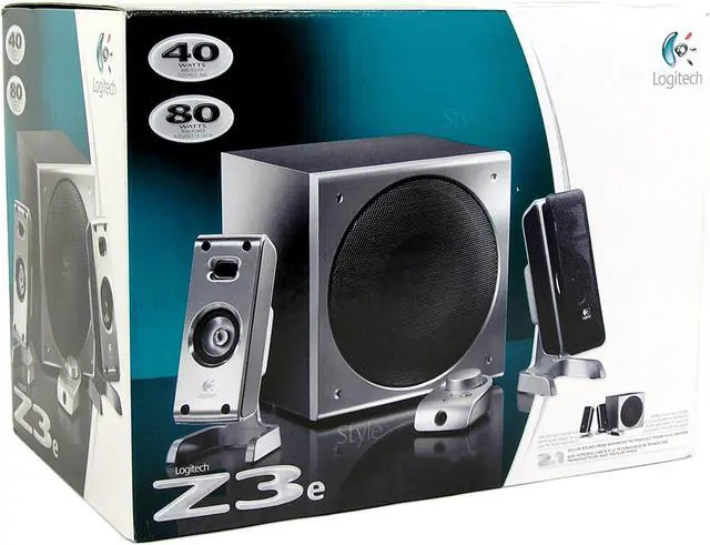 With its brushed aluminum faces and ebony styling, the Logitech Z-3e speaker system will dress up any workspace, whether it's in your home office, bedroom, or living room. The only thing that's more impressive than the Z-3e's great looks is its sound quality. Its two phase plug satellite speakers, which feature brushed aluminum removable grilles and durable cast metal stands, deliver crystal clear, room-filling music, dialogue, and sound effects. And thanks to its patented, award-winning pressure driver subwoofer technology, you'll hear all the bass you expect--and depending on how loud you turn up the subwoofer, you'll feel all the bass, too.
