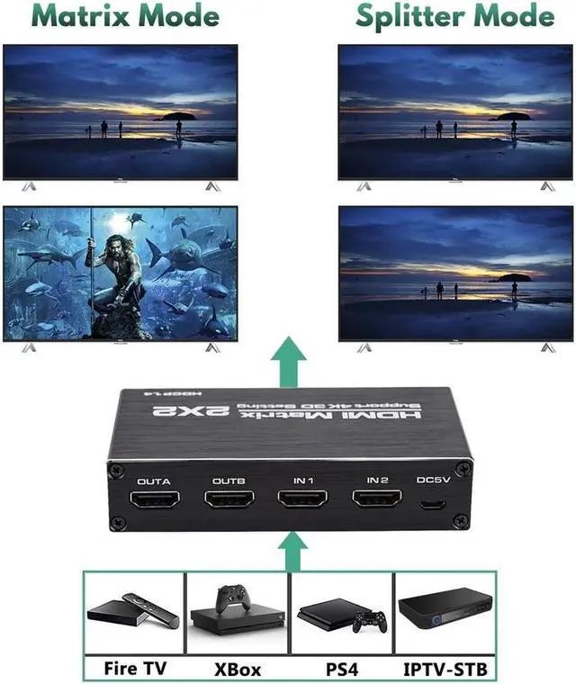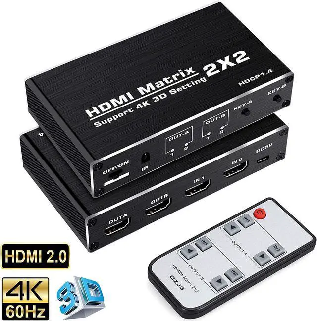 • HDMI Matrix 2x2, 2 in 2 Out Matrix Switch HDMI Video Switcher Box IR Remote Control