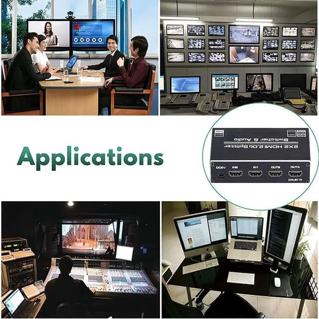 • This 2 in 2 Out HDMI switch splitter easily streams video and audio from 2 HDMI devices to 2 HDMI display simultaneously. And it can amplify your HDMI signals at the same time. This two singal sources can be switched freely via button or remote control.
