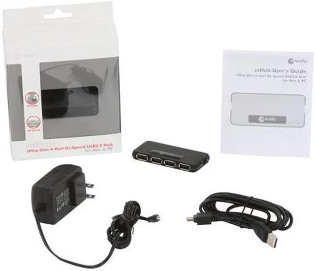 | Features | A 4-port USB hub with an external AC adapter to supply full power to devices that need it. Supports USB 2.0 and 1.1. Sleek and slim design to take up minimal space on your desk and keep all your devices plugged in. |