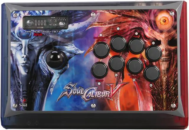 | Features | Created for the serious blade-fight enthusiast, nothing replicates the adrenaline-inducing arcade experience better than the Arcade FightStick: SOUL Edition. Approved by Namco and embellished with exclusive SoulCalibur V artwork, this officially licensed FightStick utilizes arcade-quality components from legendary Japanese arcade manufacturer, Sanwa Denshi. Featuring a Japanese-style ball-handled joystick and 30mm action buttons placed to match the Namco Noir arcade cabinet configuration, arcade and competitive gamers will both feel right at home. Features Authentic Japanese-style Joystick & Buttons: This competition-ready SOUL Edition FightStick uses high-quality Sanwa parts, the very same parts that are found in Japanese arcade cabinets. The Sanwa JLF is the standard in high-quality, tournament-grade FightSticks. 8-Button Layout with Multi-Speed Turbo Functionality: Eight Sanwa action buttons help ensure easy access to every strike, kick, guard and combo. Multi-speed Turbo functionality gives two distinct turbo speeds that can be mapped to any one of the action buttons on the FightStick, and these Turbo settings can be monitored on the control panel, and even disabled for tournament play. Premium-Quality Components with Genuine Namco Noir Layout: The eight-button Namco Noir layout offers a comfortable, ergonomic control scheme, reminiscent of SEGA's classic "Astro City" configuration. Sanwa OBSF-30 action buttons respond with pinpoint accuracy and can withstand repeated use. Controller Lock/Unlock Switch: A lock switch on the control panel provides the ability to lock out the use of Turbo functionality and prevents use of the PS button. No more accidental pauses or automatic forfeitures in key moments during tournament matches! 3-Way Joystick Switch: A useful three-way switch provides the ability to navigate in-game menus and play games from other genres, including downloadable titles on the PlayStation Network. |