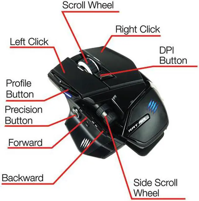 | Features | Unlimited power - mouse is powered via magnetic field using activation board No internal battery and no battery needed Wireless or wired connection Dual-sided activation board 16" diagonal of available playing space on activation board Multi-button functionality for maximum precision and control, Scroll wheel, Left click, Right click, DPI button, Forward, Backward, Precision button, Profile button, Side scroll wheel Adjustable DPI - up to 12000 Precision button instantly increases or decreases sensitivity F.L.U.X. software lets you customize your settings Store your favorite 4 user profiles on mouse using on-board memory Industry-leading OMRON switches - 50 million click lifetime Adjustable palm rest - side button releases palm piece for customizable comfort Extended wing thumb rest - ergonomically designed to be comfortable even through hours of game play Low friction PTFE glide feet provide smooth, fast movement without dragging Chameleon lighting strip PIXART PMW3360 Sensor |