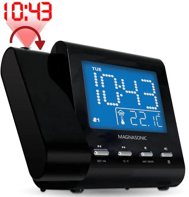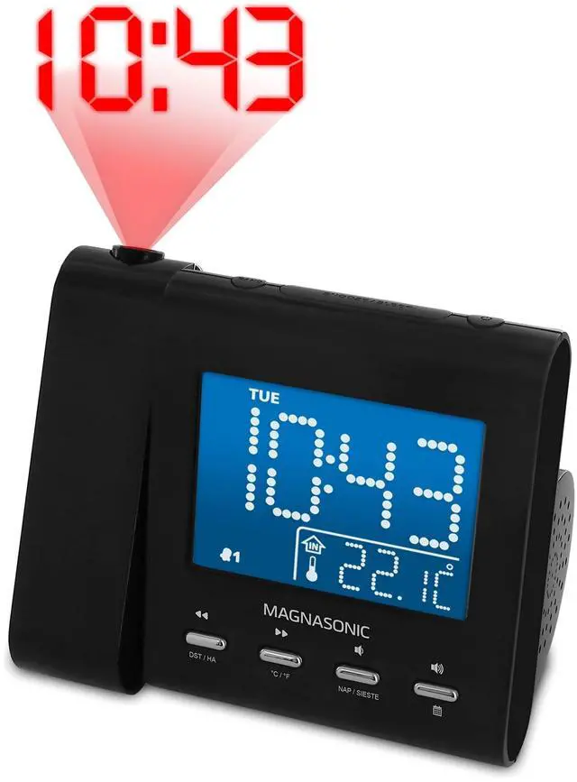Convenience, reliability, & modern design come in the form of the EAAC601 Projection Alarm clock. This advances clock radio automatically sets the time and date and saves all your alarm settings when the power goes out. Plus so many more features, this is the only alarm clock you will ever need.