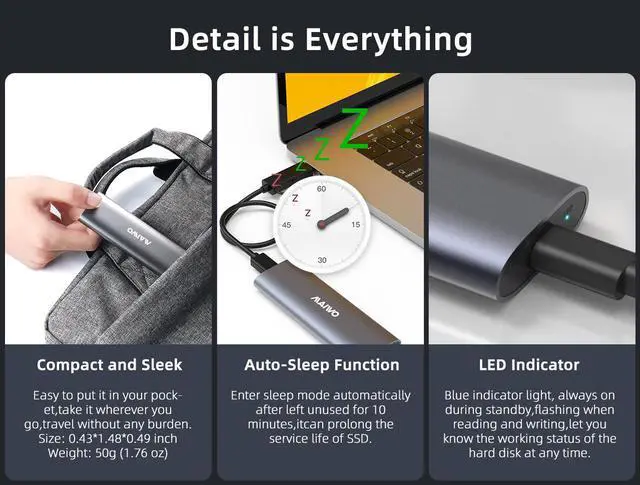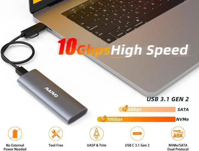 - Max transfer speed up to 6Gbps(SATA SSD)/10Gbps(NVME SSD)