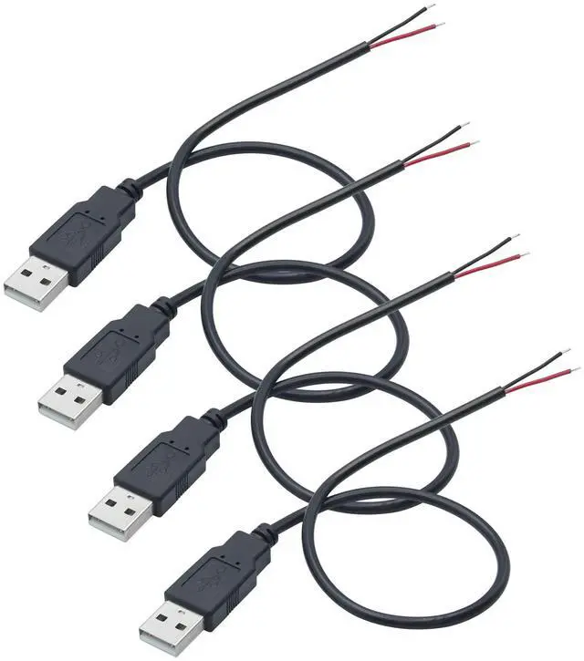 4Pcs USB A Male Plug to 2 Pin Bare Wire