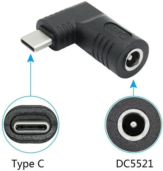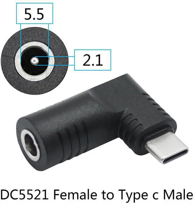 1Pcs Right Angle DC 5521 to USB C Connector Adapter