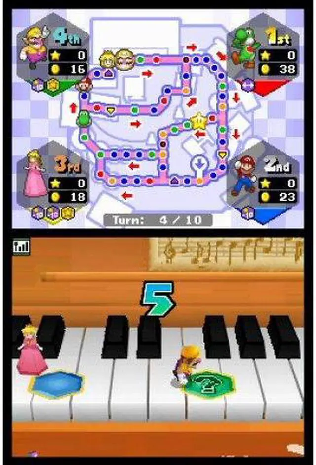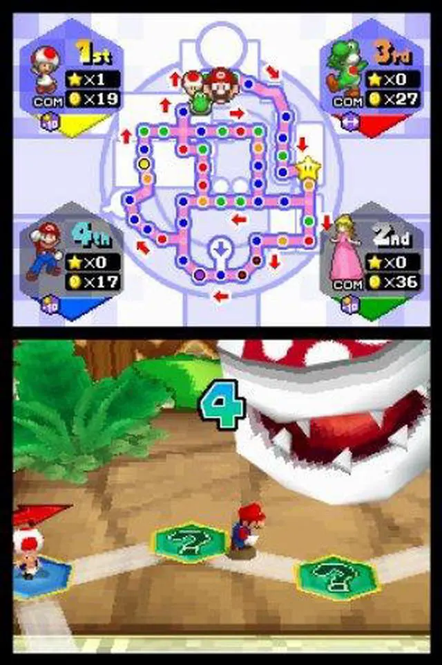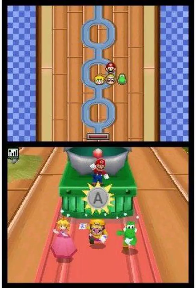 Play with OthersMario Party DS makes the series’ multiplayer action portable at last, from playing with friends on the game boards to challenging them in favorite minigames. And now players can throw a party anywhere and play wirelessly with friends, since much of the game can be shared to other Nintendo DS systems from just one game card.