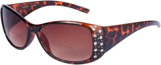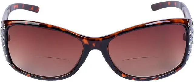 Women's Fashion Bifocal Sunglasses with Rhinestones +3.00 Tortoise