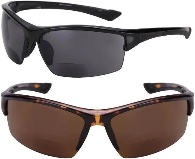 If viewing objects up close as well as reading in the sun is difficult for you, bifocal sport wrap sunglasses may be the perfect solution. Rather than having to constantly switch between reading glasses and sunglasses, bifocals contain split lenses that allow for distance vision and reading vision that are perfect for reading gauges in your car or motorcycle, viewing your heart rate and pace time while setting personal bests for running, biking and all outdoor sports and activities. We are offering an incredible deal of 2 pairs of bifocal sport wrap sunglasses. Wear these sun readers outdoors while reading, driving, using your cell phone and playing sports!