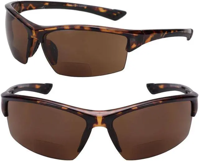 If viewing objects up close as well as reading in the sun is difficult for you, bifocal sport wrap sunglasses may be the perfect solution. Rather than having to constantly switch between reading glasses and sunglasses, bifocals contain split lenses that allow for distance vision and reading vision that are perfect for reading gauges in your car or motorcycle, viewing your heart rate and pace time while setting personal bests for running, biking and all outdoor sports and activities. We are offering an incredible deal of 2 pairs of bifocal sport wrap sunglasses. Wear these sun readers outdoors while reading, driving, using your cell phone and playing sports!