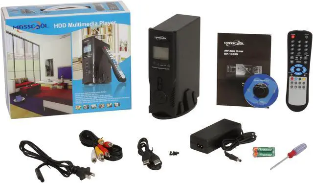 High-quality Media & Pictures Content PlaybackWith the Masscool MP-1369S's digital media player, enjoy your media content stored on the built-in hard drive on your home entertainment equipment with uncompromising image and sound quality. Various media/pictures formats include DivX, XviD, MPEG 1/2/4, BMP, JPEG, MP3, and AVI.