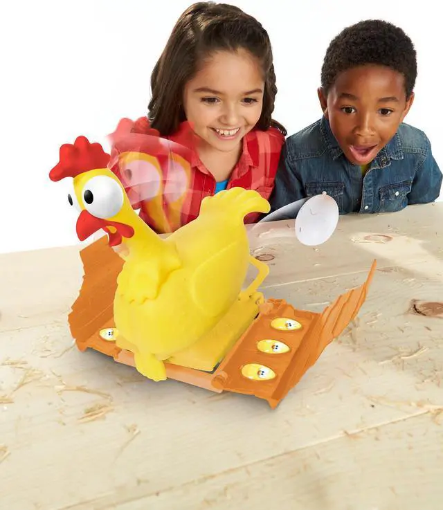 Press the chicken and listen for the funny "SQUAWK!" If the hen house opens, the chicken will lay an egg that you get to "crack o...