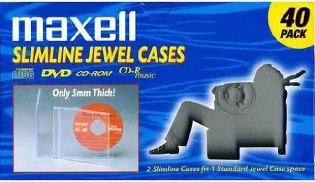 Maxell CD-365 Slimline Jewel Cases lets you downsize the space needed