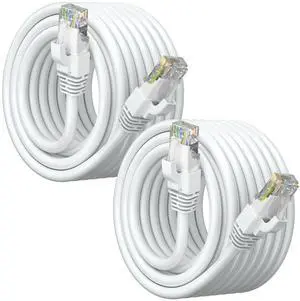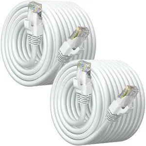 Cat6 Ethernet Cable 40ft, CCA Ethernet Cable, UTP, LAN Cable, Network Cable, Ethernet Cord with RJ45 Connectors, Supports Cat6/ Cat5e/ Cat5, White (2 Pack, 40 Feet)