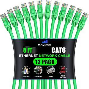 Maximm Cat 6 Ethernet Cable Wire 8 Ft, (12-Pack) Cat6 Cable, LAN Cable, Internet Cable and Network Cable - UTP (Green)