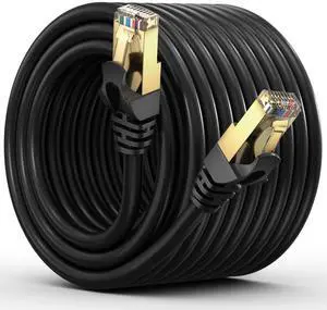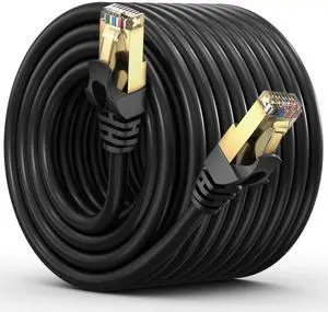 Cat 7 Ethernet Cable 50 ft - High-Speed Cat7 Internet & Network LAN Patch Cables, RJ45 Connectors - Perfect for Gaming, Streaming, and More (Black)