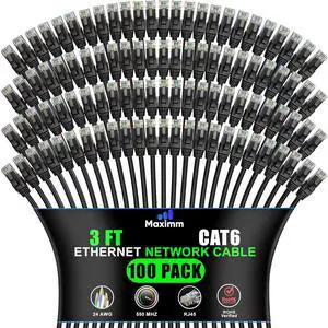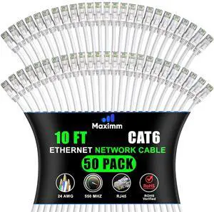 Maximm Cat 6 Ethernet Cable - High-Speed LAN, Internet, Patch & Network Cable - UTP, 10Gbps, 550MHz Ethernet Cord 50-Pack