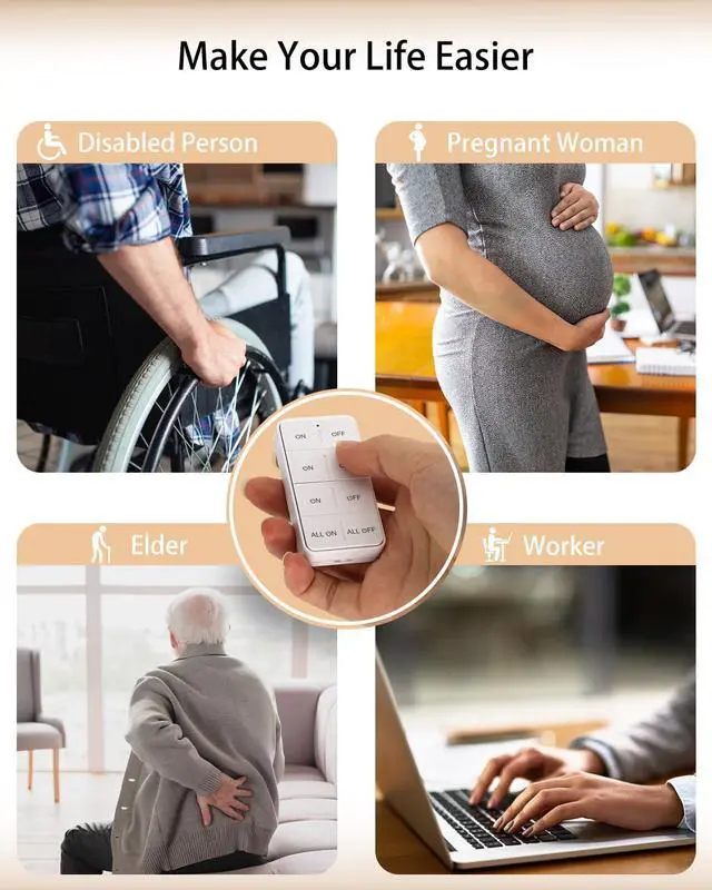 < b >Why Choose MaxKnoc Wireless Remote Control Socket and Removable Wall Switch Kit?< /b > < br >< br > < b >Safe and Reliable< /b > < br > FCC and ETL certifications are listed, and the secure remote outlet gives you peace of mind.< br >< br > < b >Controls Up to 3 Lights< /b > < br > Inside the packing list contains 3 remote control sockets, which can satisfy you to control 3 lights or other small appliances at the same time with one remote control.< br >< br > < b >Detachable Remote Control< /b > < br > The remote control can be mounted on the wall or removed from the base and placed next to the bed or in another convenient place.< br >< br > < b >Easy To Install< /b > < br > No wiring, no WiFi needed. Easily control lights, fans, ceiling lighting, Christmas tree, holiday decoration, and other small domestic electrical appliances.< br >< br > < b >Make Your Life Easier< /b > < br > Say goodbye to walking up to turn your lights on and off, it is convenient for the elderly, pregnant women and disabled people.< br >< br > < b >Product Specification< /b > < br > Operating Voltage: 120 Volts< br > Max Current Rating: 15A< br > Max Load Power: 1800W< br > Transmission Frequency: 433.92MHZ< br > RF Range: 200Ft (open area)< br > Remote Control Outlet Size: 2.55 x 1.38 x 1.18 inches< br > Detachable Remote Size: 2.56 x 1.34 x 0.39 inches< br > Remote Control Base Size: 4.33 x 2.68 x 0.27 inches< br >< br > < b >Packing List< /b > < br > 3 x Remote Control Outlets< br > 1 x Detachable Wall SwitchCR2032 battery included< br > 1 x User Manual< br > 1 x Mini Screwdriver< br > 2 x 3M Adhesive< br > 4 x Screws< br >