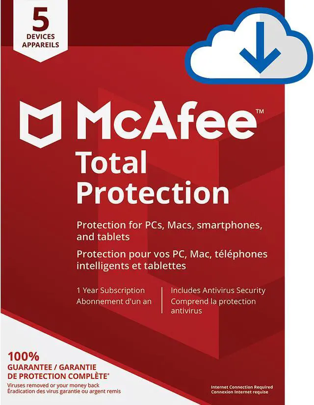 With McAfee Total Protection, count on a name you can trust to get premium antivirus and privacy protection you need for your PCs, Macs, smartphones and tablets - now backed by our 100% Guarantee: a McAfee expert will remove the virus, or your money back! Additional terms apply.
