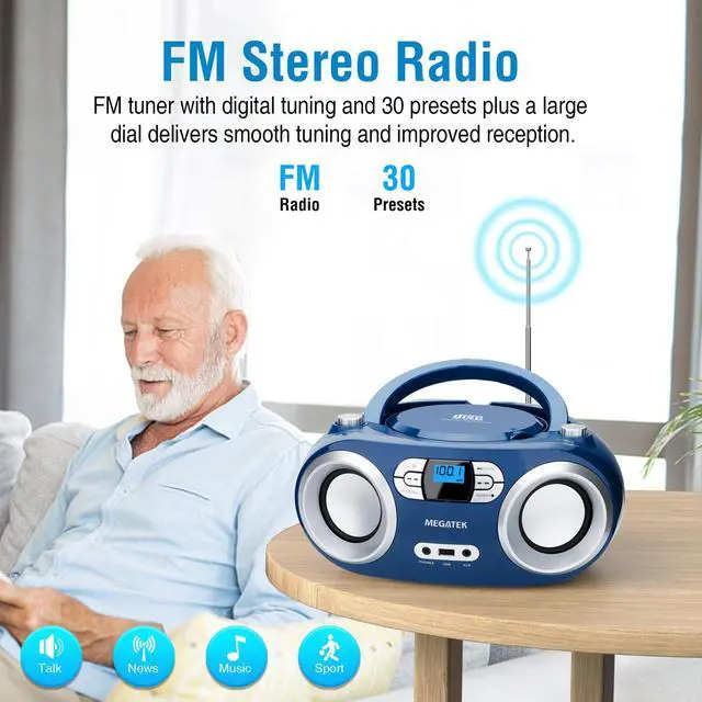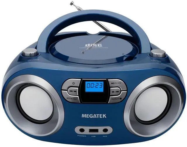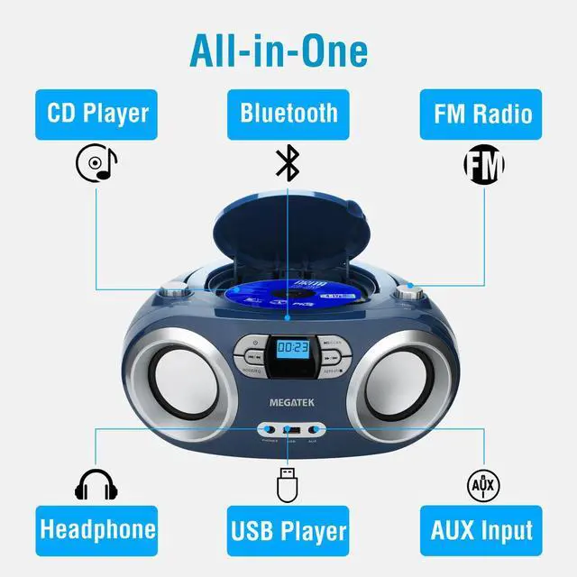 Merchant VideoEnjoy portable audio at home or on the go with the stylish and easy-to-use MEGATEK CB-M25BT CD Boombox, with clear stereo sound from dual 3" front-firing speakers and your choice of CD, USB, Bluetooth, AUX In and FM radio playback.