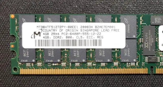 MT36HTF51272PY-80EE1 Micron 4GB 800MHZ 2Rx4 240 PIN 512MX72 PC2-6400P-555-12-ZZ DDR2 CL5 ECC REGISTERED Server Memory
