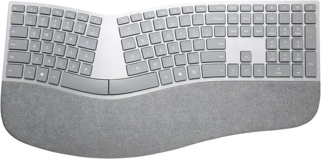 The Surface Ergonomic Keyboard’s double-cushioned palm rest uses a special, ultra-durable version of Alcantara - a unique, proprietary material, sourced only in Italy, with aesthetic, sensory, and technical qualities unlike anything you’ve ever experienced. The subtle changes to the keytop geometry, split space bar and naturally arched shape protect you from wrist and hand strain, and improve your typing form to speed up your WPM. The key sound, stiffness and texture provide a stable and quiet typing experience with optimized grip. Optimized feedback and return force prevents accidental presses and allows for smooth, consistent action.