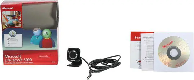 | Features | Photo Swap Share and swap photos in real time with your friends and family using Windows Live Messenger—right in the video call window! Windows Live Call Button It's simple to start video calls. One touch of the Windows Live Call Button lets you see who's online, and you're on your way to making a video call. LifeCam Dashboard Add special effects and control your webcam—all from the Windows Live Messenger window. One-Touch Blogging Upload photos to your blog on Windows Live Spaces with any of your photos at the simple click of your mouse. World Class VGA Optics See more clearly with 2x the light collection than regular VGA optics. Superior Low-light Performance Auto-adjusts for low-light conditions. Fun Flexible Base Bend, fold and shape the flexible base for the best angle on laptop screens, flat panels and traditional monitors. Optimized for Windows Live Messenger Windows Live Messenger lets you chat online via text, voice and video. Combine the features of Windows Live with the LifeCam VX-5000 for an unforgettable experience. 1.3 Megapixel Sensor Take 1.3 megapixel photos to share with friends and family. Built-In Microphone The built-in microphone automatically picks up your voice with remarkable clarity. Video Effects Discover a fun way to express yourself with these entertaining video effects built into the LifeCam dashboard. Broad IM Compatibility Works with: Windows Live, AOL Instant Messenger, Yahoo! Messenger, Microsoft Office Communicator, Skype. 3X Digital Zoom The zoom delivers realistic, up-close-and-personal video, so you can see the contours of every smile. Attaches to Desktops and Notebooks Fits on most monitors, including flat screens and notebooks, or sits directly on your desk. Always Focused The webcam is always in focus – no fine tuning needed. Focus depth of field is from 21" to 60". |