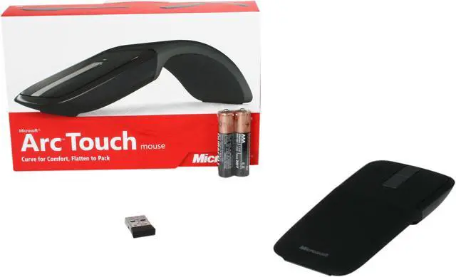 Microsoft Arc Touch Mouse RVF-00001 Black 2 Buttons Touch Scroll USB RF Wireless BlueTrack Mouse