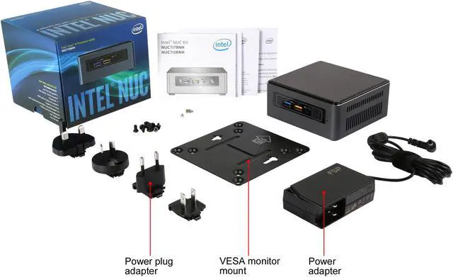 The Intel NUC Kit NUC7i5BNHX1 is powered by a dual-core (quad-thread) Intel Core i5-7260U processor, features two SO-DIMM slots (DDR4), and a 2.5" drive bay. A 16GB Intel Optane Memory M.2 module is pre-installed for amazingly responsive computing experience. Intel Iris Plus Graphics 640 is a power-packed integrated GPU that delivers discrete-class performance. 802.11 ac + Bluetooth 4.2 make it easy to connect Wi-Fi or Bluetooth gadgets. There’s also a front power button and a multi-color LED ring so you can personalize the NUC with the look you want. The NUC7i5BNHX1 gives you the performance to turn the Intel NUC into a powerhouse of productivity and play, running analytics and working late into the night, or streaming your favorite movies and music to unwind at the end of your day.