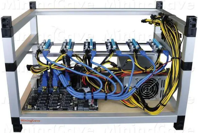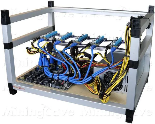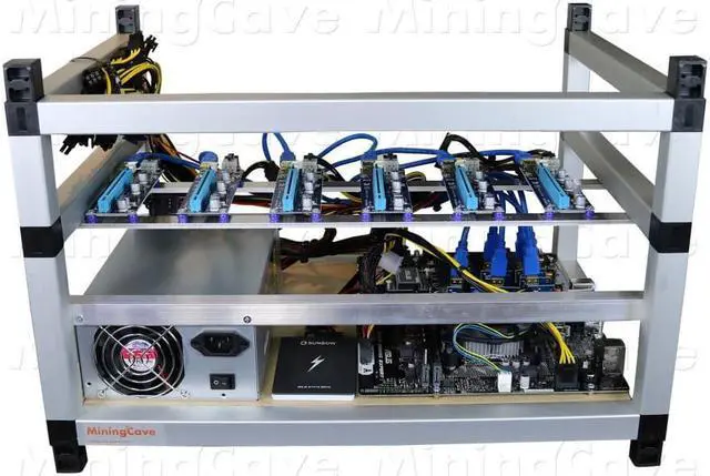 Specification MiningCave RIG-KIT ready to put 6 X GPU Remote control from your computer Mining software already installed ( ETHEREUM ZCASH ) Can mine different algorithms like Ethash, Equihash, CryptoNight Stackable 51 x 35 x 35 cm ( L. x W. x H. ) Total weight 8kg Run on 120V-240V AC Components ATX Motherboard intel lga1151 ( Motherboard model can change from the picture ) CPU intel lga1151 4Gb of RAM DDR4 6 PCI-E CABLE DUAL 6+2 PIN ( TOTAL 12 X 6+2 PIN PCI-E ) 6 X USB 3.0 PCI-E 1X to 16X Extender Riser Adapter Silver Aluminum MiningCave frame 1 X Hive OS - 16 GB USB Flash Drive 1 X 2000W ATX Power supply Shipping Safe professional packaging 30 days MiningCave Warranty Worldwide Delivery ( UPS DHL )