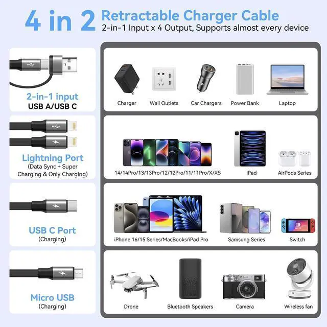 ![Multi Charging Cable, [2Pack 4Ft] 3 in 1 Retractable Fast Charger Cable Multi Charging Cord USB C...](http://c1.neweggimages.com/sellingpilot/modules/product/a-plus/71b4c2a92aab5b0f813d3af130895ed1d594f71a28ecd3ce8810305a62dea16e.jpg)