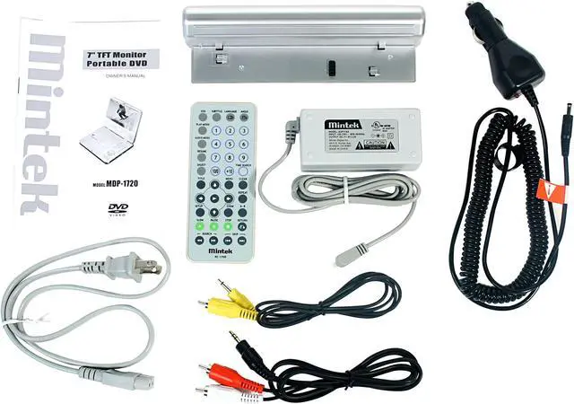 Package Contents Portable DVD Player, AV Cable, Lithium Battery, Remote Control, Car cigarette Adapter, AC Adapter