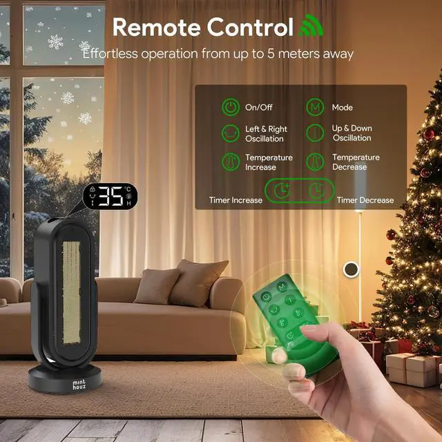 | Special Feature | Adjustable Temperature, Oscillating, Overheat Protection, Remote Control, Tip-Over Protection |