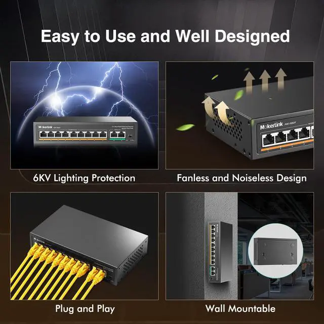 The 11 port poe switch has built-in professional mine-proof circuits, effectively reducing the impact of thunderstorms on network systems and improving system robustness.