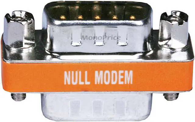 RS-232, DB 9 pin male to male null modem. Null modems are used to connect two computers or other devices together to achieve file transfer. Null modem connectors are different from straight through connectors because the receive and transmit conductors are crossed. This is a miniature null modem with male connectors on each side. *Monoprice continually strives to improve its product line to bring our customers the best products available. Therefore, changes may be made to listed specifications without prior notice. Item received may not match photo or specs shown