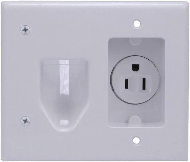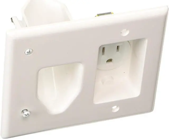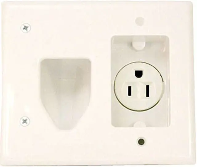 Use this nice looking, recessed low voltage cable plate with recessed power to install power and low voltage cables behind your flat panel TV, your amplifier or other audio and video devices. The recessed low voltage cable plate with recessed power can be installed upright or upside down and will clean up the look of your entertainment center. You can install this plate right over an existing outlet. Just remove the existing outlet and install this one in it's place. You'll cut the drywall next to it to allow for the cable side of this plate.