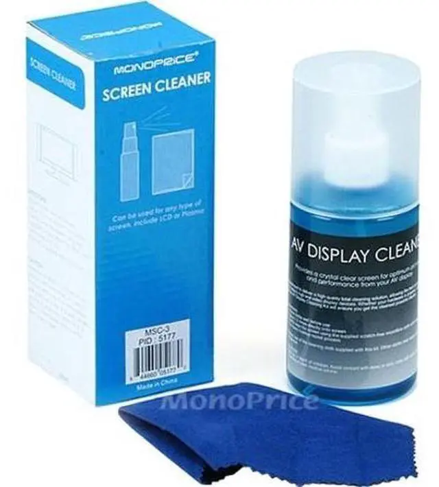 These cleaners are great for all kinds of LCD displays including portable devices like the IOS devices (iPad/iPhone/iPod), smartphones, Galaxy Tabs, etc. Monoprice cleaning kits come with specially formulated solutions designed specifically for modern electronics and microfiber cleaning clothes that will not scratch delicate surfaces. The cleaning liquid is alcohol free and leaves a streak free finish. Easily remove the fingerprints and grime from your screen.