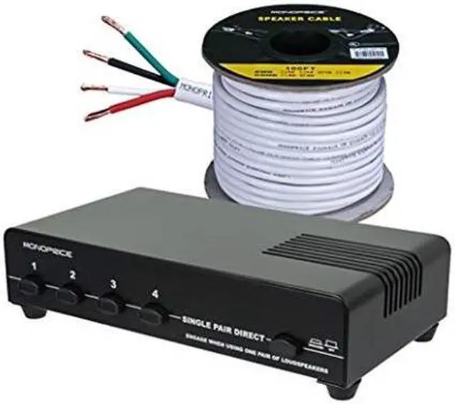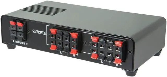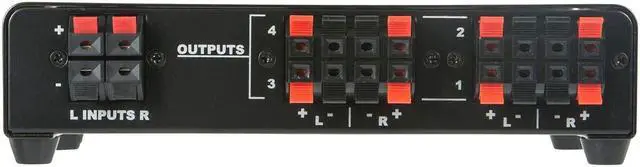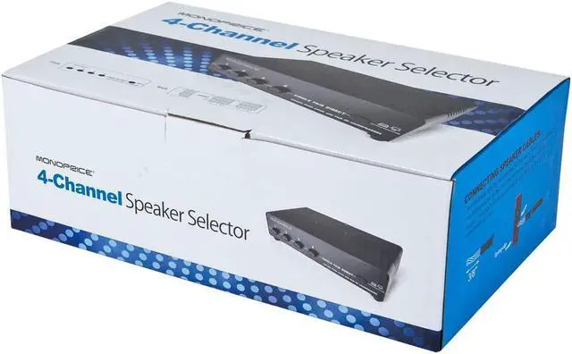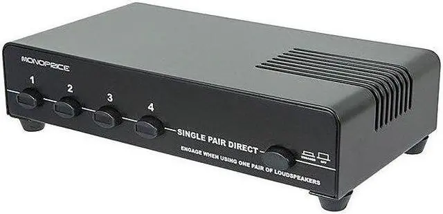 Distribute your music to every room in your home with this 4-channel speaker selector from Monoprice! This 4-channel speaker selector allows you to distribute your audio signals to up to four different speaker zones. An optional impedance protection circuit ensures that impedance seen by your amplifier remains constant, no matter how many speakers are in use. This switch can support up to 70 watts per channel with the protection circuit enabled or up to 140 watts per channel without the protection circuit in place.