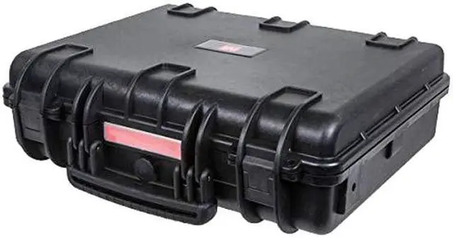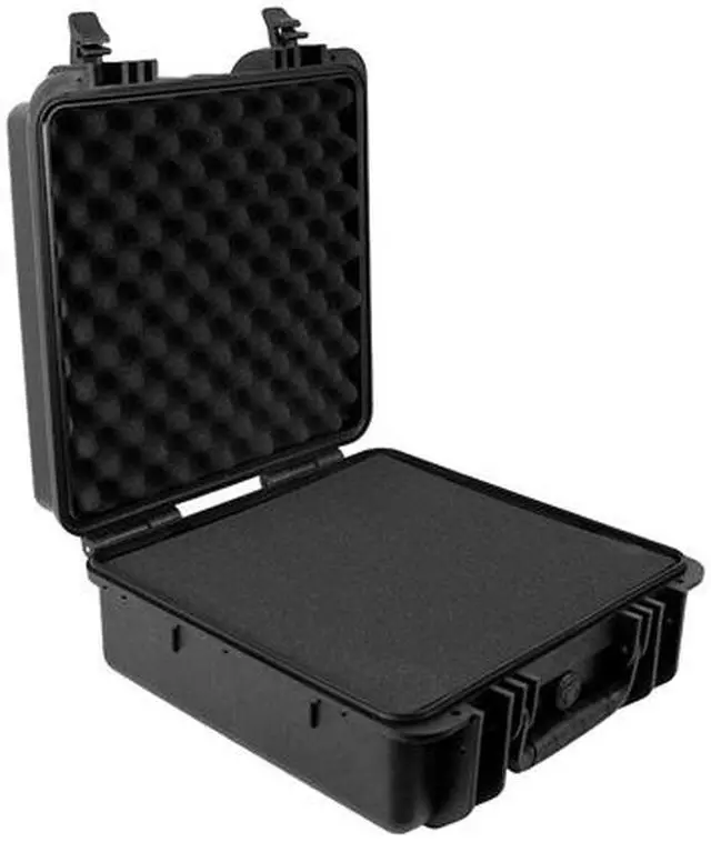 Monoprice Weatherproof polypropylene case with customizable foam measuring 18.86" x 16.34" x 5.91" has shockproof design with fully customizable foam interior. Case features pressure relief valve that allows to equalize the pressure inside and out.
