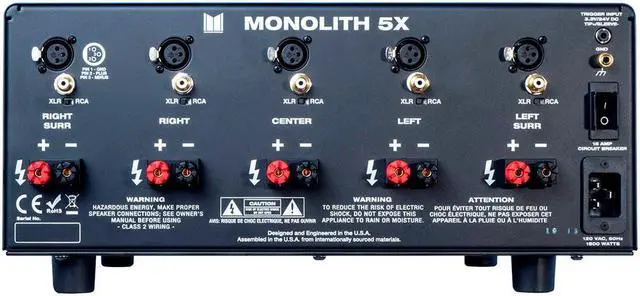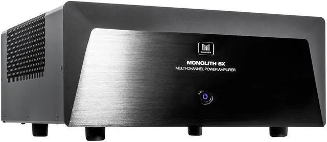 The Monolith 5X is a state of the art, high performance, audiophile grade multichannel home theater amplifier. Rated at a full 200 watts per channel into 8 ohms and 300 watts per channel into 4 ohms, the Monolith 5X is capable of driving the most demanding home theater systems and reproducing the most dynamic soundtracks, while also articulating all the subtle sonic details found in music. Supercharge your existing receiver or create the foundation of a no compromise home theater system with the Monolith 5X.