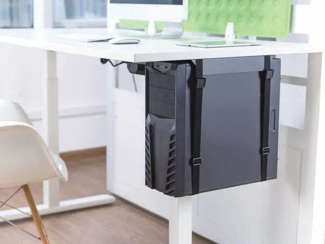 Free up valuable desk space and get a clutter-free workstation by moving your computer case out of the way! Attach it under your desk with the help of this low profile computer mount so you can keep your PC tower off your desk, and still off the floor where it could get dusty or be cumbersome to reach. This mount gives your computer case a home that is secure, out of the way, but still within easy reach. It works particularly well with sit-stand desks, allowing CPU enclosures to move with your height-adjustable workstation while keeping cables and connections attached and organized.