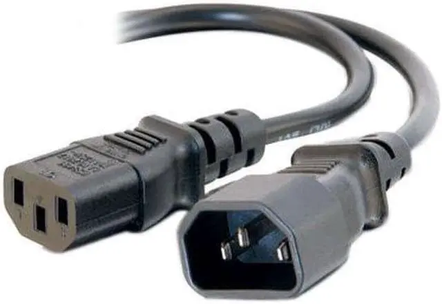 Save an AC power outlet by connecting your computer monitor to the computer power supply or extend a cable with an IEC 60320 C13 connector on one end. This cable features a female IEC 60320 C13 connector on one end and a male IEC 60320 C14 plug on the other end. Simply mate the male C14 connector to another cable with a female C13 connector. Alternatively, mate the male C14 connector to the C13 panel connector on a computer power supply then mate the female C13 connector to a male C14 connector on a monitor or monitor AC power adapter.