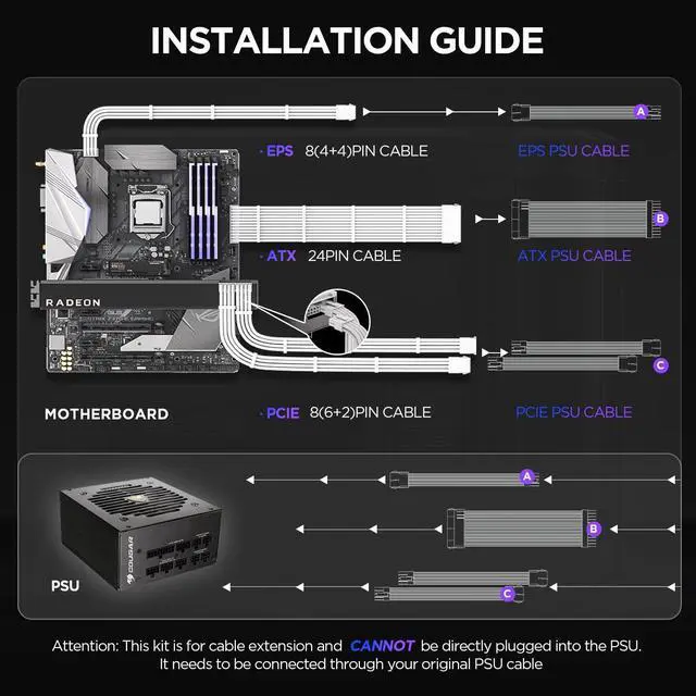 The length of this sleeved psu extension set is 30cm, which provides enough space for a wide range of pc case.