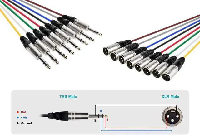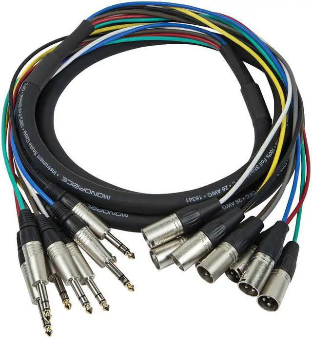 • Buy with Confidence: With Monoprice's Lifetime Warranty on all Cables, you can rest assured we stand behind our products and our customers.|26AWG conductors with aluminum foil shielding|Eight balanced mono or unbalanced stereo lines with color-coded wires|1/4" TRS plugs on one and end XLR male plugs on the other end
