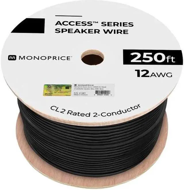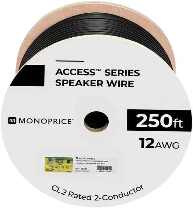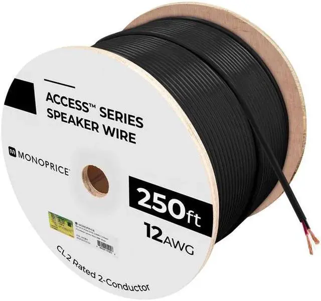 Monoprice Speaker Wire, CL2 Rated, 2-Conductor, 12AWG, 250ft, Black