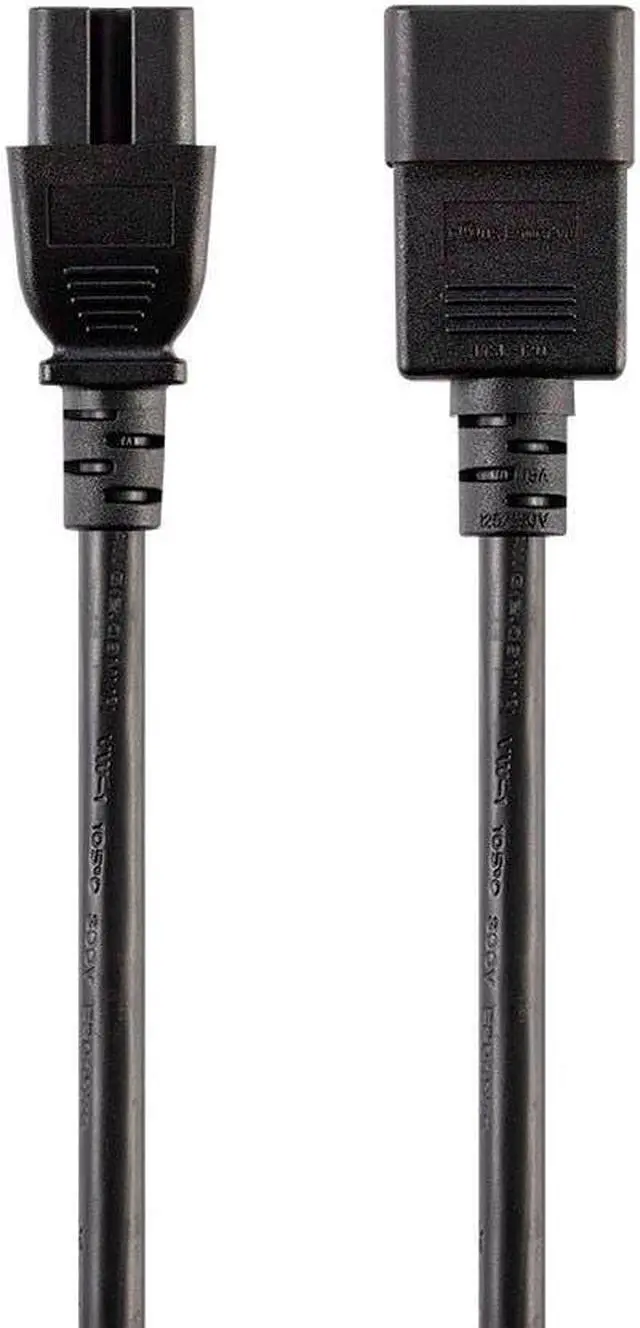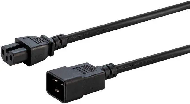 IEC 60320 C20 to IEC 60320 C15 power cords are commonly used between Cisco or Juniper Networks rack mounted equipment and the PDU in a data cabinet. Extend the reach of your AC powered device using this AC power extension cord to energize equipment from a distant power outlet. This cable features a standard, grounded IEC 60320 C20 plug on one end and an IEC 60320 C15 receptacle on the other.