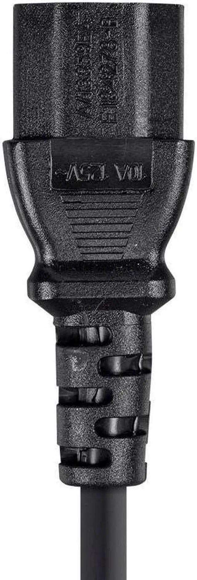 The North America NEMA 5-15 plug to IEC 60320 C13 female connector power cord works with most PCs, monitors, scanners, and printers. Connect your computer, monitor, power adapter, or other device with a male IEC 60320 C14 panel connector to a standard US AC wall outlet. The power cord features a standard, grounded NEMA 5-15P plug on one end and an IEC 60320 C13 connector on the other end. Simply mate the female C13 connector with the male C14 connector on your device or power adapter, then plug the NEMA connector into a nearby AC power outlet, UPS, or other AC power source.
